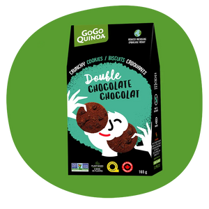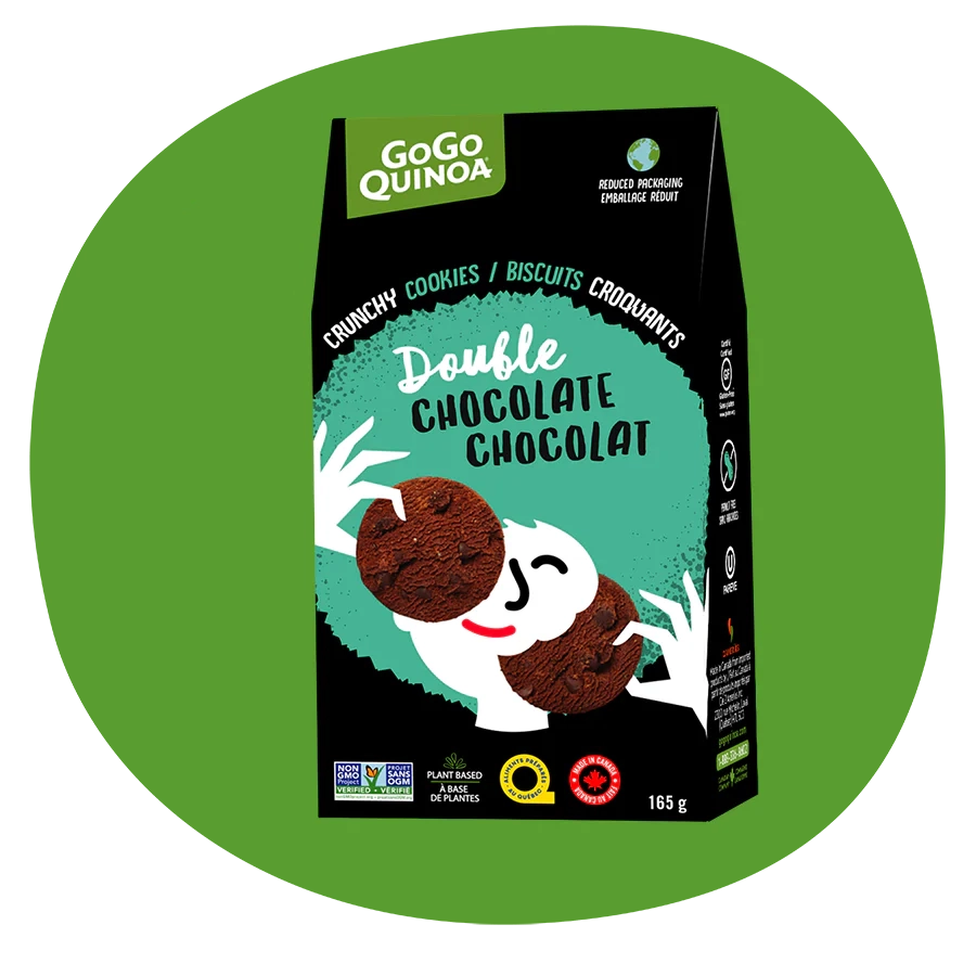 Discover our crunchy double chocolate cookies, made with healthy and natural ingredients such as quinoa, chia and kaniwa. 100% compostable wrapper.